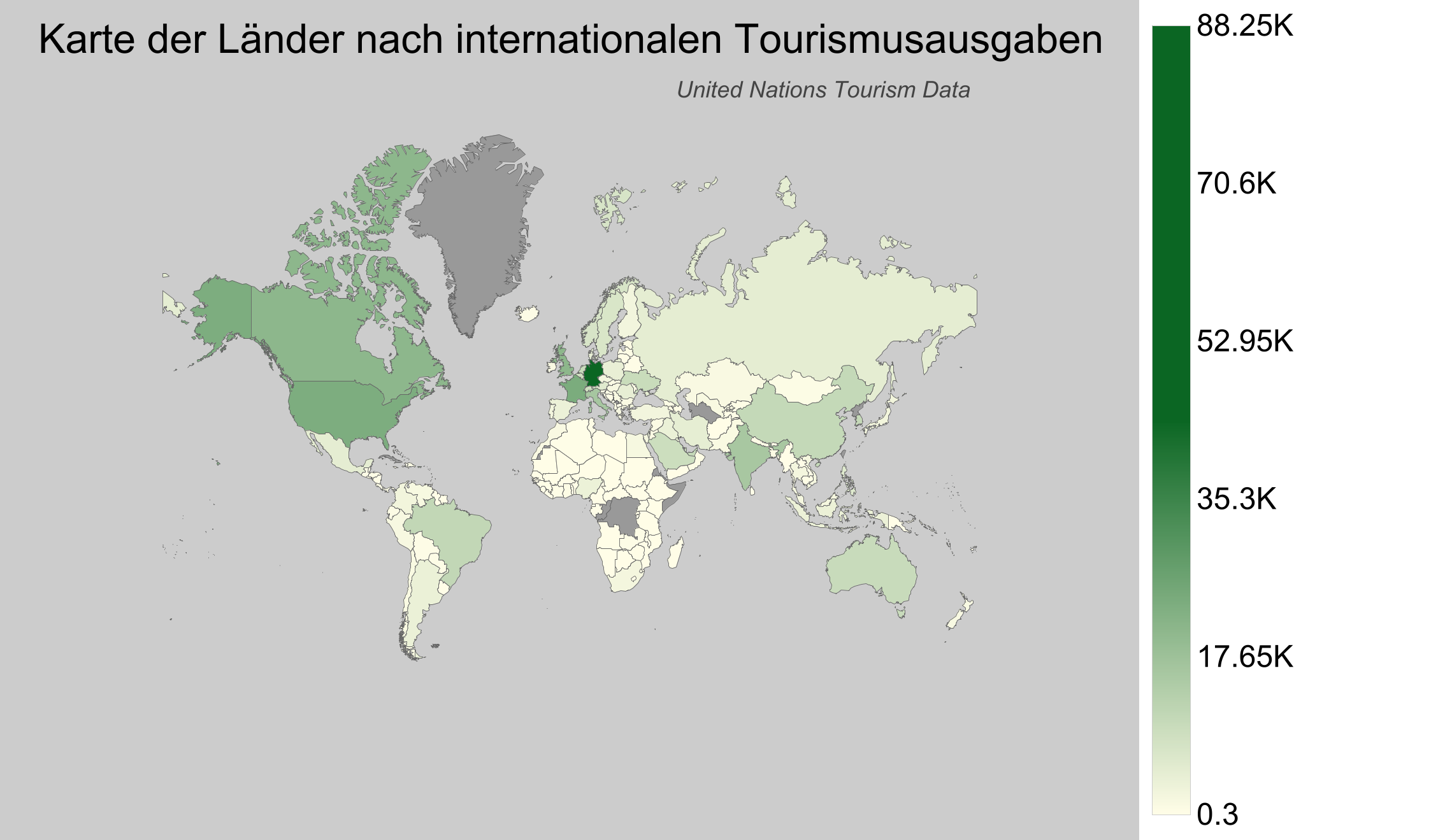 - Deutschland: Deutsche Touristen sind bekannt für ihre Reisefreude und geben jährlich ungefähr 88 Milliarden US-Dollar für Auslandsreisen aus. Beliebte Ziele sind dabei sowohl europäische Nachbarländer als auch exotischere Destinationen.